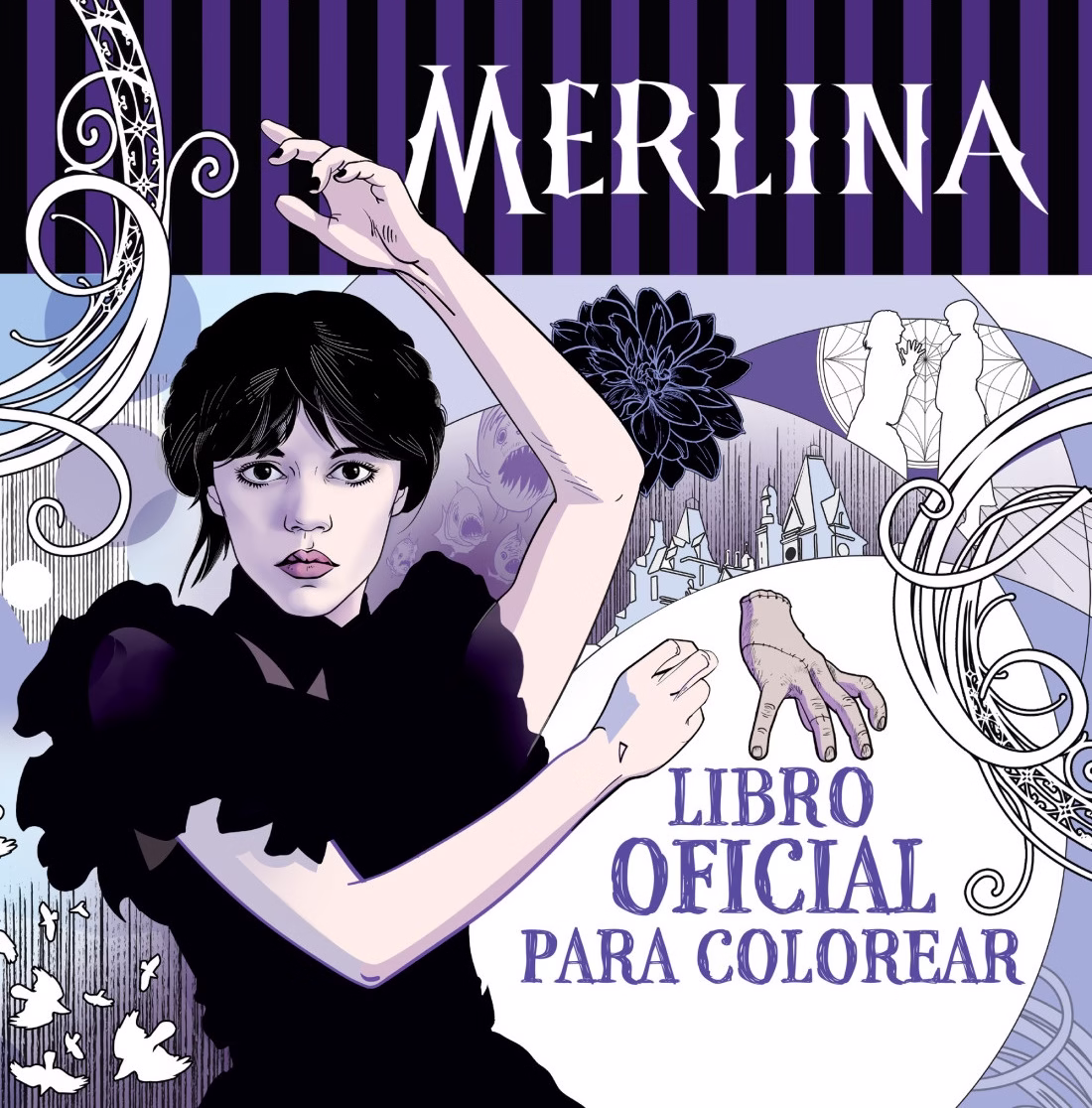 Si Miércoles Addams pudiera elegir las tonalidades con las que pintaría estas páginas, seguro que serían todas negras, ¡pero tú puedes darles vida como quieras!